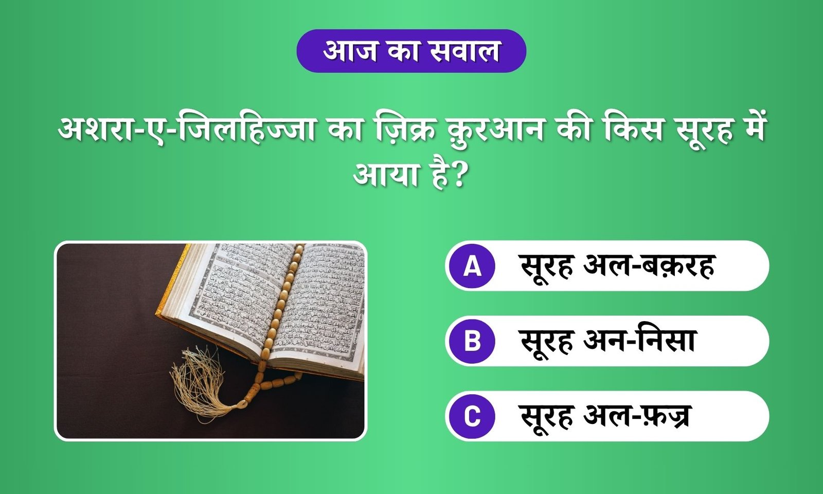 सवाल: अशरा-ए-जिलहिज्जा का ज़िक्र क़ुरआन की किस सूरह में आया है?