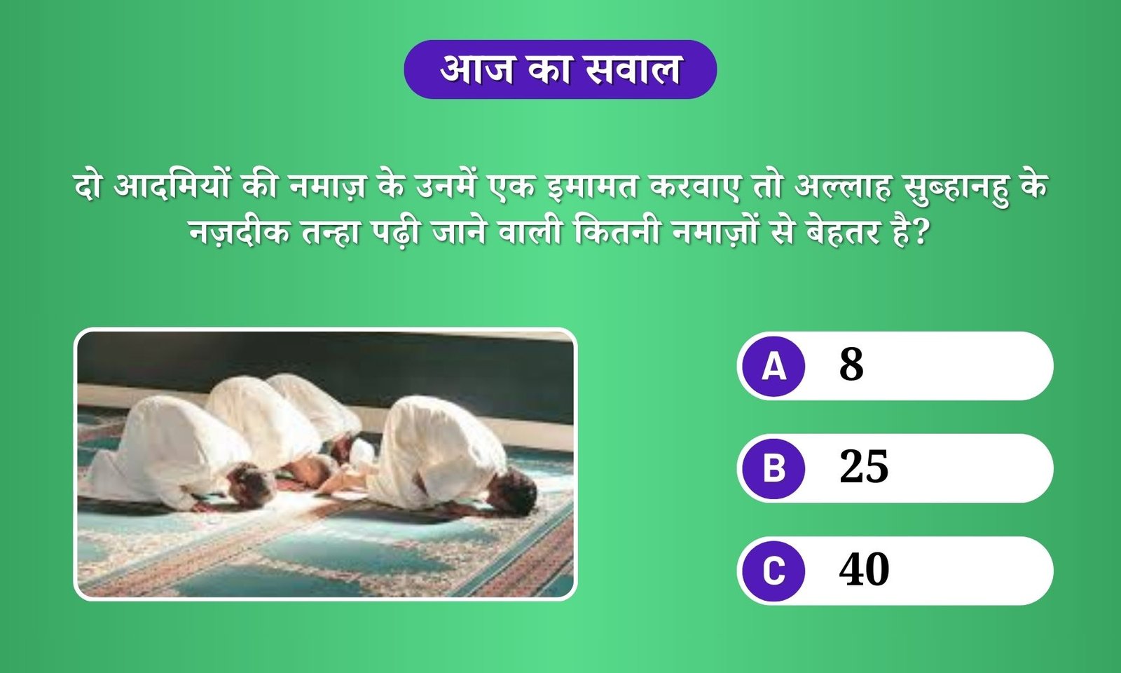 सवाल: दो आदमियों की नमाज़ के उनमें एक इमामत करवाए तो अल्लाह सुब्हानहु के नज़दीक तन्हा पढ़ी जाने वाली कितनी नमाज़ों से बेहतर है?