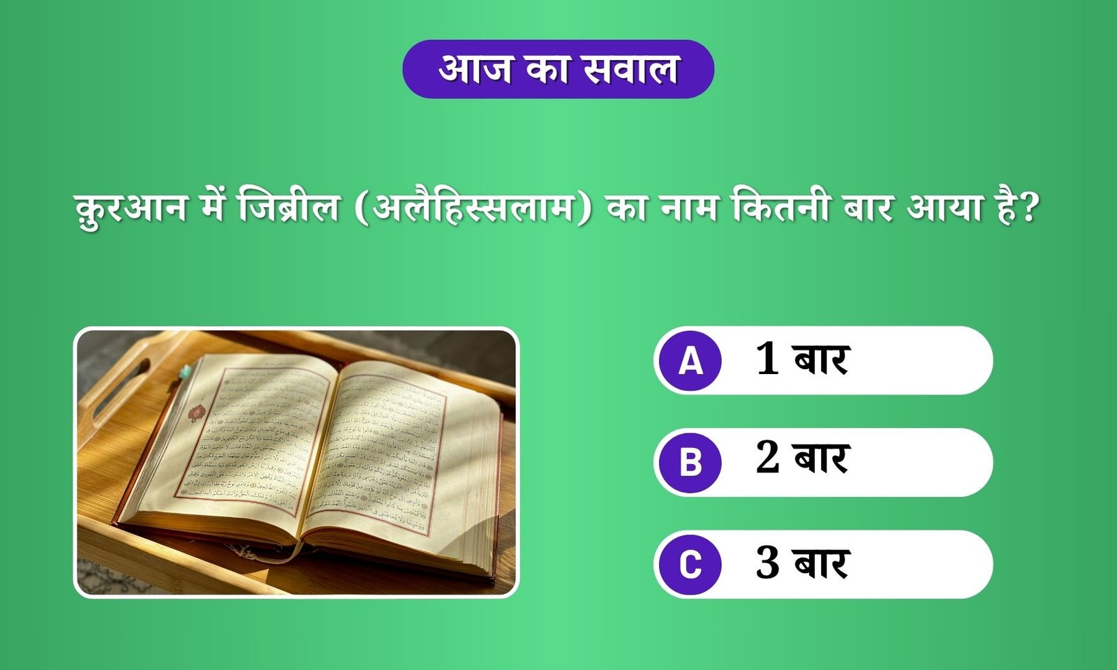 सवाल: क़ुरआन में जिब्रील (अलैहिस्सलाम) का नाम कितनी बार आया है?