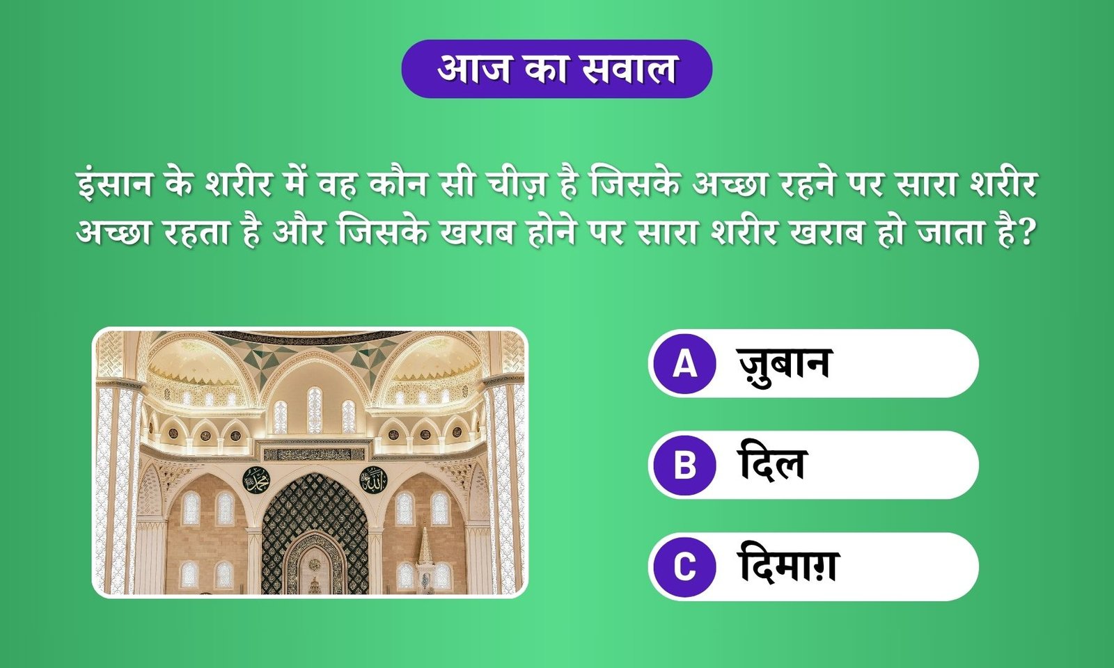 सवाल: इंसान के शरीर में वह कौन सी चीज़ है जिसके अच्छा रहने पर सारा शरीर अच्छा रहता है और जिसके खराब होने पर सारा शरीर खराब हो जाता है?