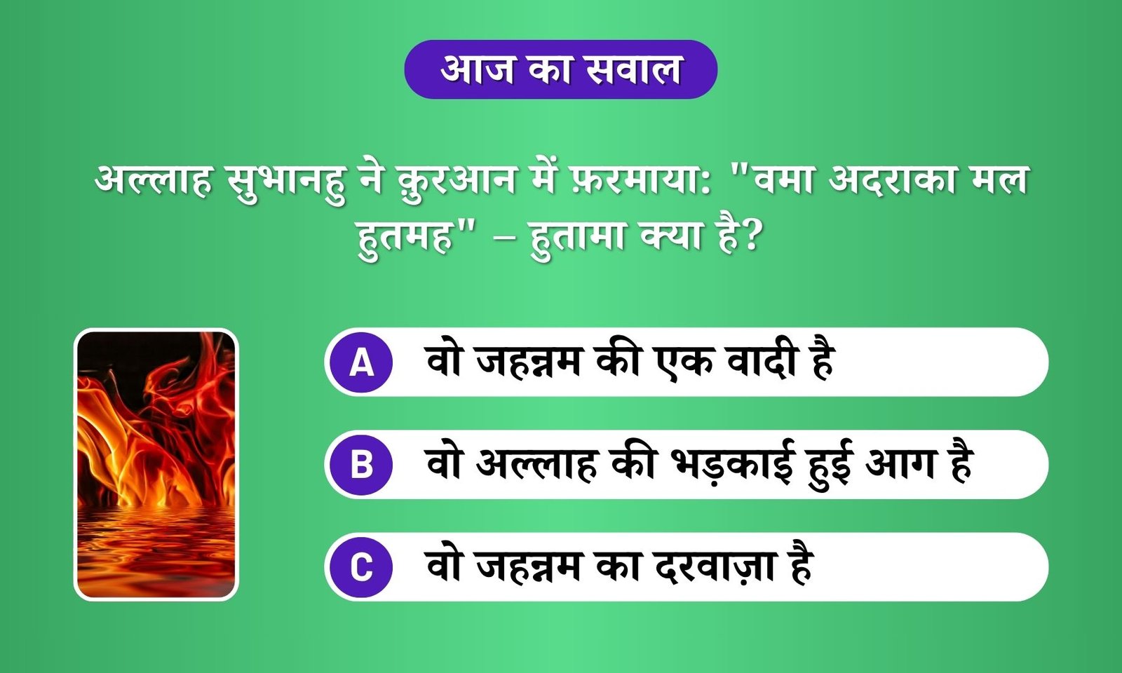 सूरह अल-हुमाज़ा में अल्लाह ने एक खास आग — “हुतामा” — का ज़िक्र किया है और फ़रमाया: