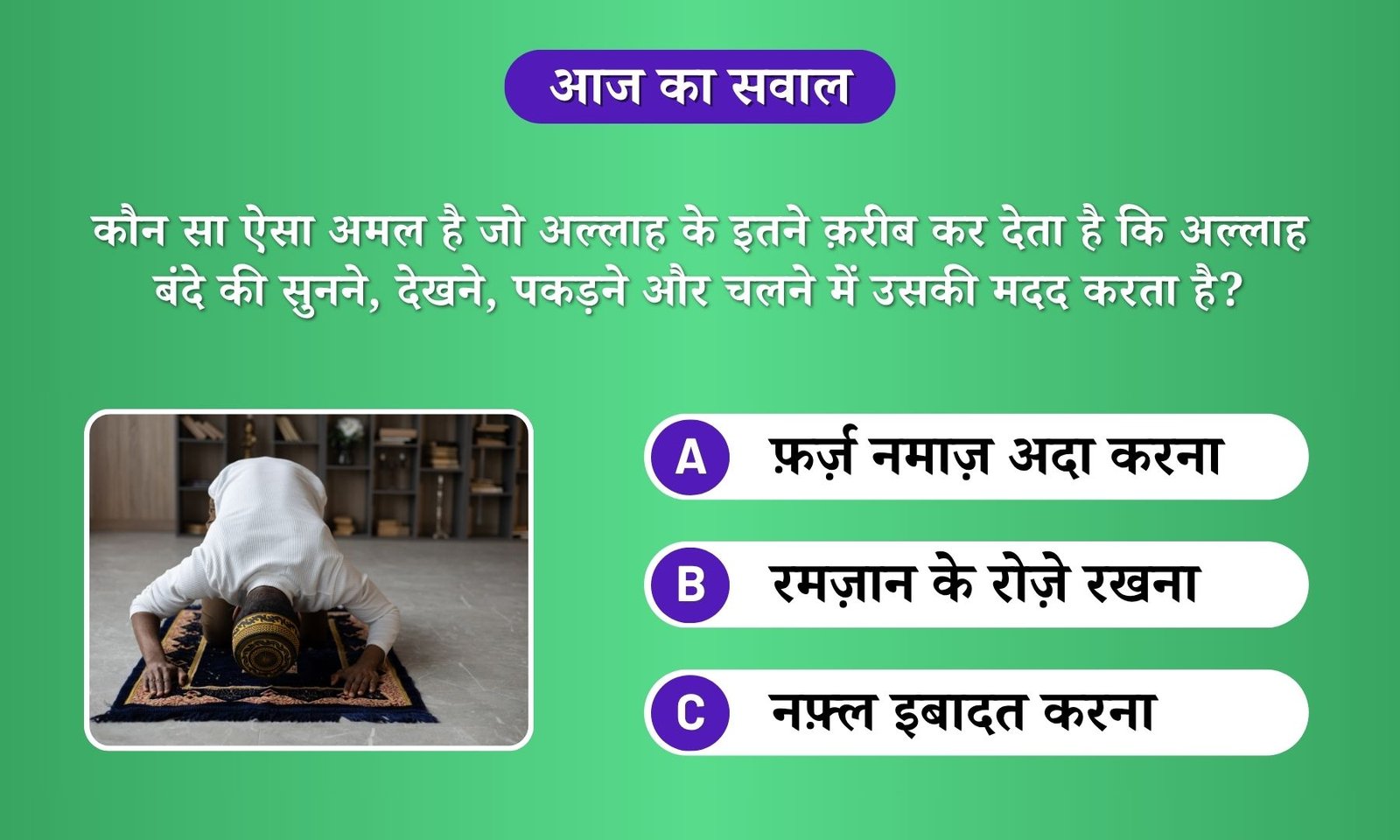 • D. नफ़्ल इबादत करना