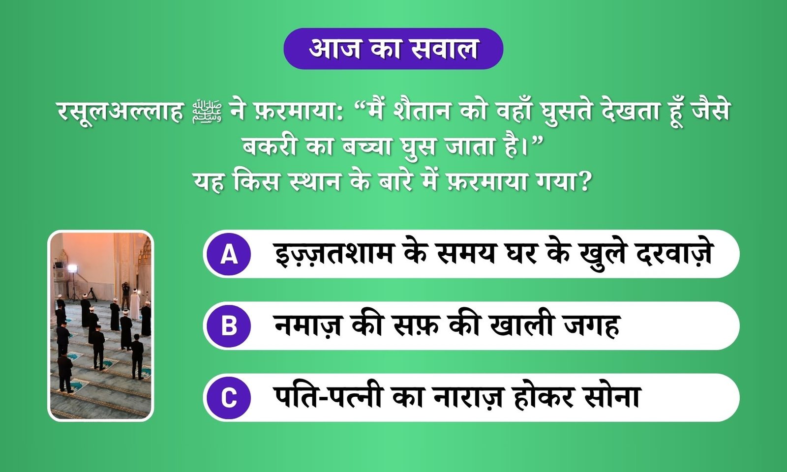 सही जवाब है: ऑप्शन B , नमाज़ की सफ़ की खाली जगह