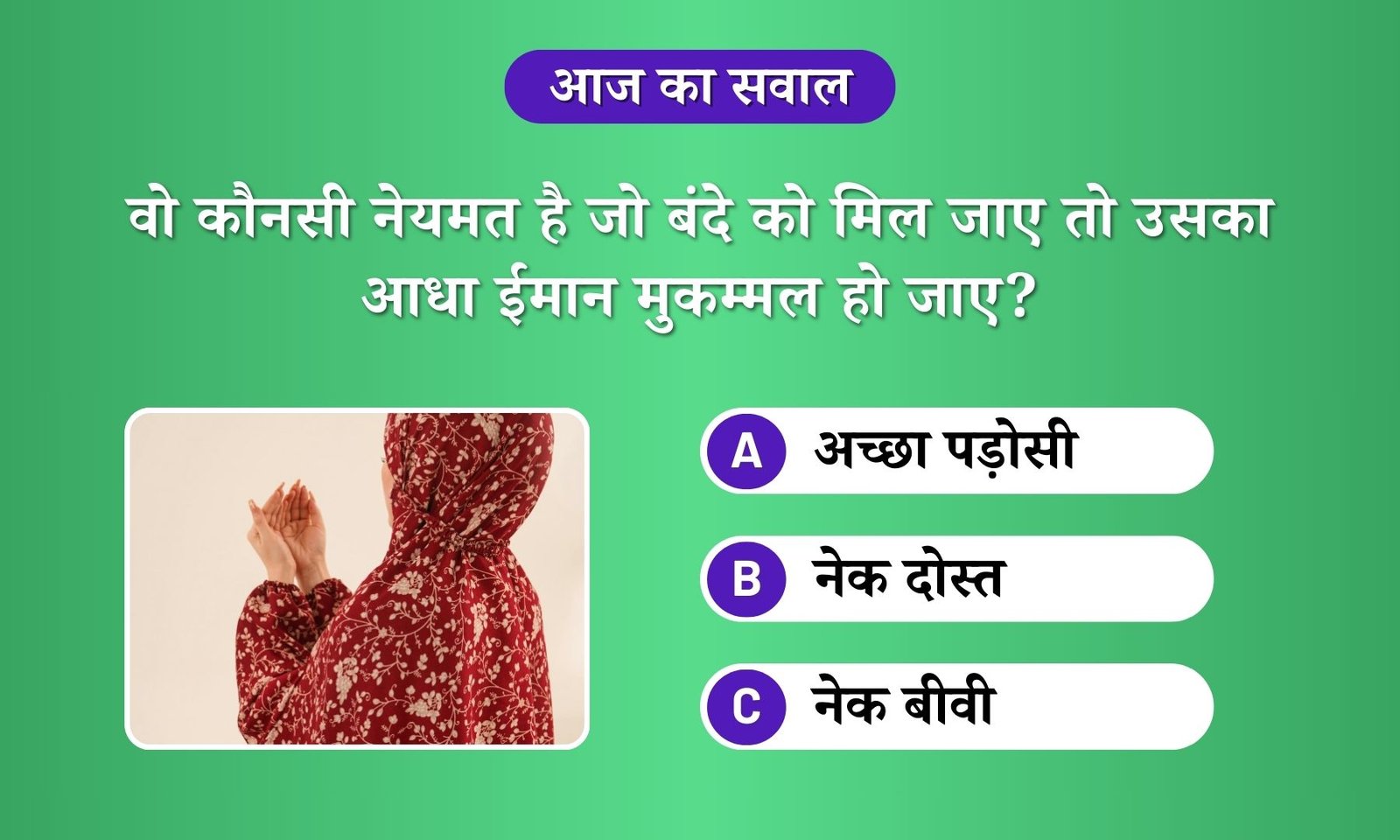 सवाल: वो कौनसी नेयमत है जो बंदे को मिल जाए तो उसका आधा ईमान मुकम्मल हो जाए?