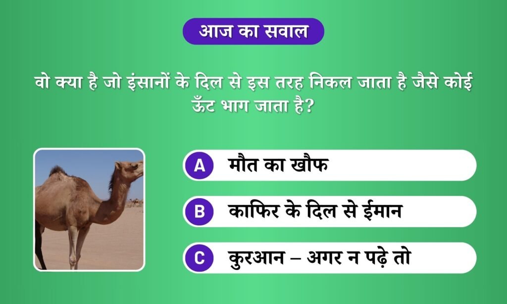 वो क्या है जो इंसानों के दिल से इस तरह निकल जाता है जैसे कोई ऊँट भाग जाता है? जवाब देखे »