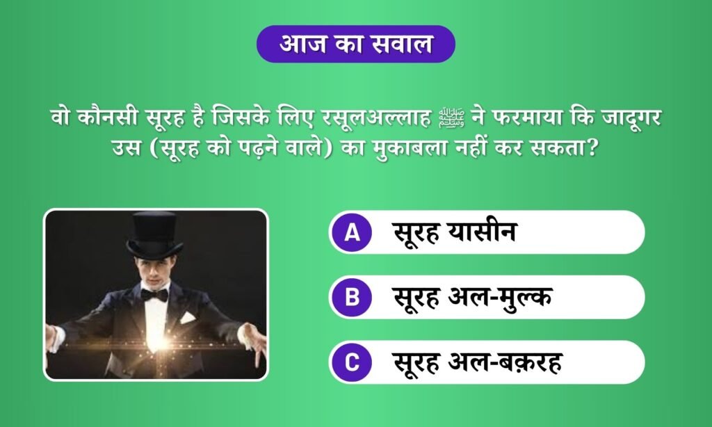वो कौनसी सूरह है जिसके लिए रसूलअल्लाह ﷺ ने फरमाया कि जादूगर उस (सूरह को पढ़ने वाले) का मुकाबला नहीं कर सकता?